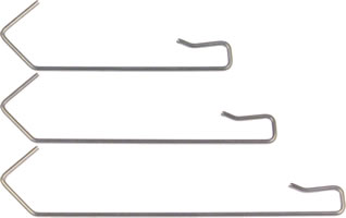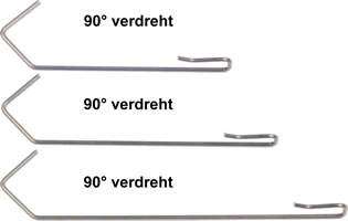 De klemhaken kunnen ook gemmakt worden van 1,2 mm, 1,5 mm, Verenstaal draad of RVS-Verenstaal draad.