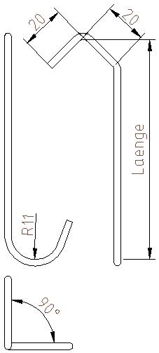 Standaard haken Nr. CER20/20R11 90° gedraaid