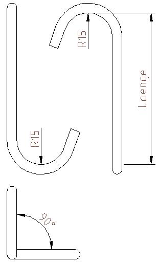 10,0 mm ijzerdraadArtikel-Nr.als voorbeld voor 90° draaiing haken 150 Stuk Art.-Nr. CRR15 100 x 10,0 90°