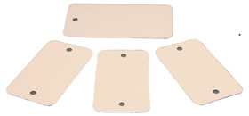 Alle plaatjes hebben afgeronde hoeken en een ophanggat van 5,0 ofwel 8,0 mm