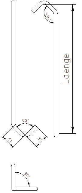 1,5 - 3,0 mm verkoperd ijzerdraadArtikel-Nr. als voorbeld voor 90° draaiing haken 1.250 Stuk Art.-Nr. CE 11/11 100 x 3,0 90°