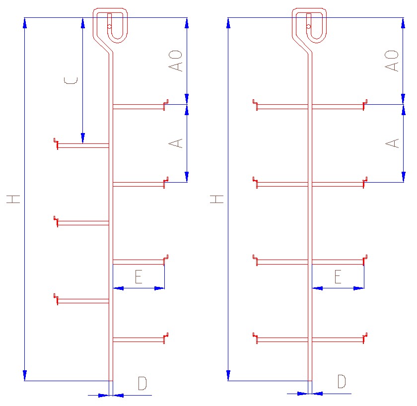 ____ = stuks rekken ____ mm = H ____ mm = AO ____ mm = A ____ mm = C |