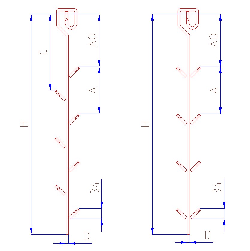____ = stuks rekken ____ mm = H ____ mm = AO ____ mm = A ____ mm = C |