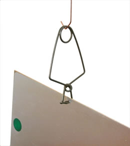 Door de speciale manier van klemmen blijft slechts een gering ophangpuntje op het produkt zichtbaar.